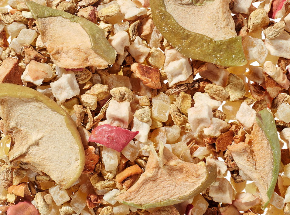 Ez a különleges gyümölcstea keverék nem igényelt édesítést , hiszen természetes módon édeskés és ízvilággal rendelkezik. Fő összetevője a kandírozott gyömbér , amelyhez szárított gyömbér és háromféle alma társul.